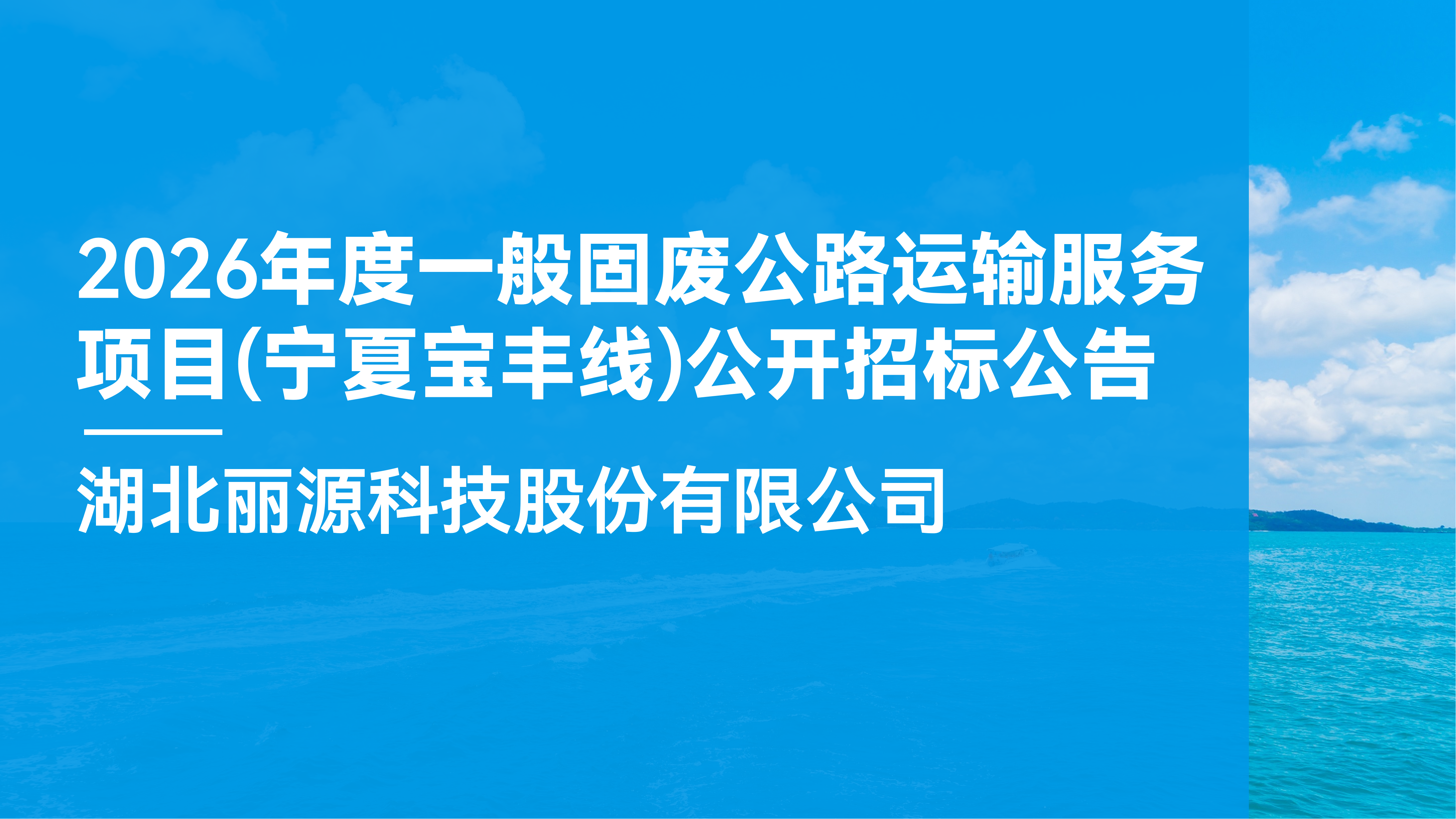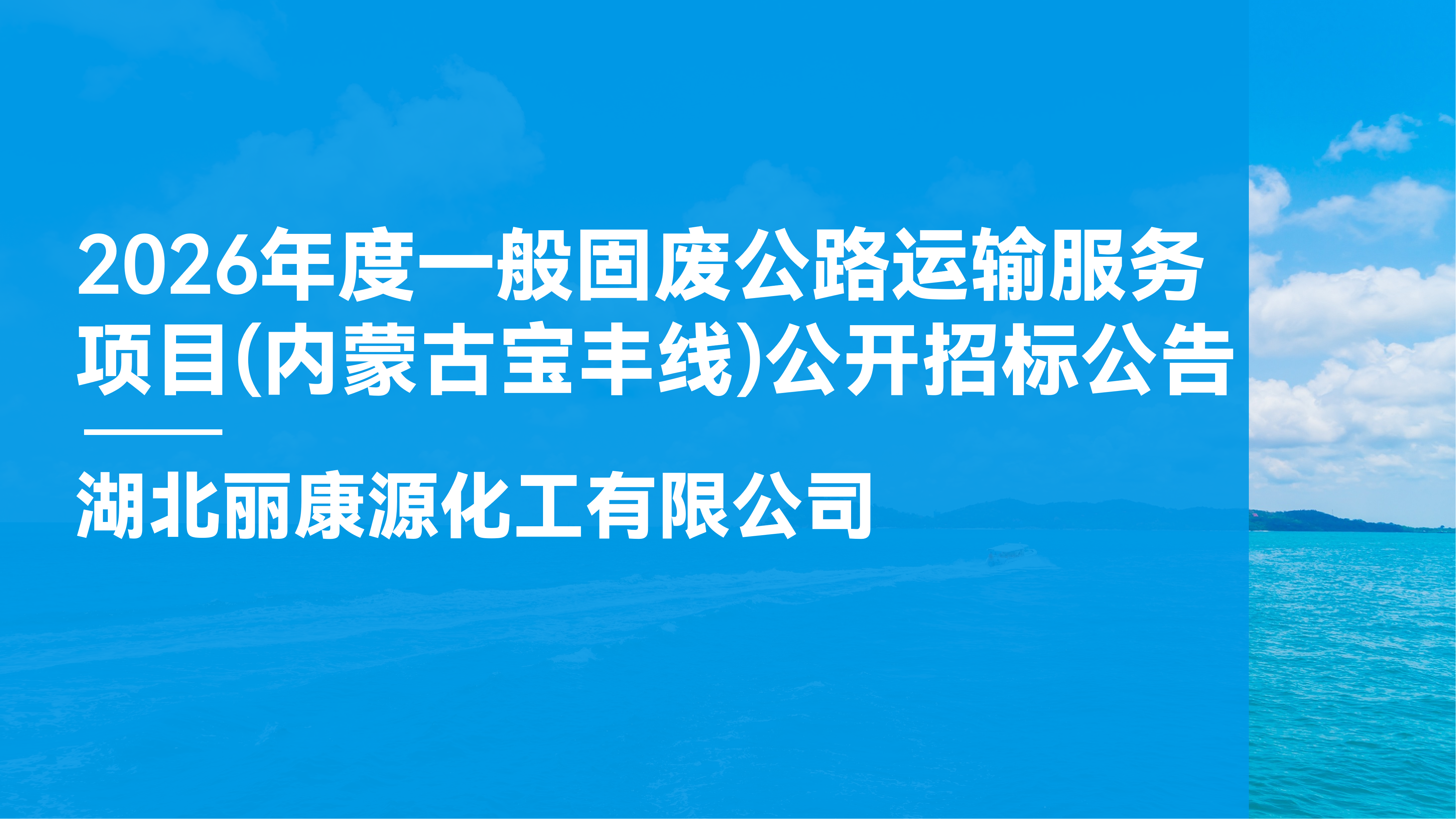 1.项目概况与招标范围 1.1 项目基本情况:根据我单位2026年业务需要,现需符合条件和资质的供应商提供一般固废公路运输服务。现拟通过公开招标方式选择符合条件的承运商。 1.2 招标范围:本项目需要国内符合一般固废运输条件的物流企业,为皇冠2020hg下载提供一般固废公路运输服务。 1.3 服务期限:暂定2026年1月1日—2026年12月31日,具体运输时间以我单位通知时间为准。 2.资格条件 2.1 投标人须为在中华人民共和国境内合法注册的法人或依法设立的其他组织,并能提供有效的营业执照及法定代表人身份证明文件。 2.1.1 公司成立...
