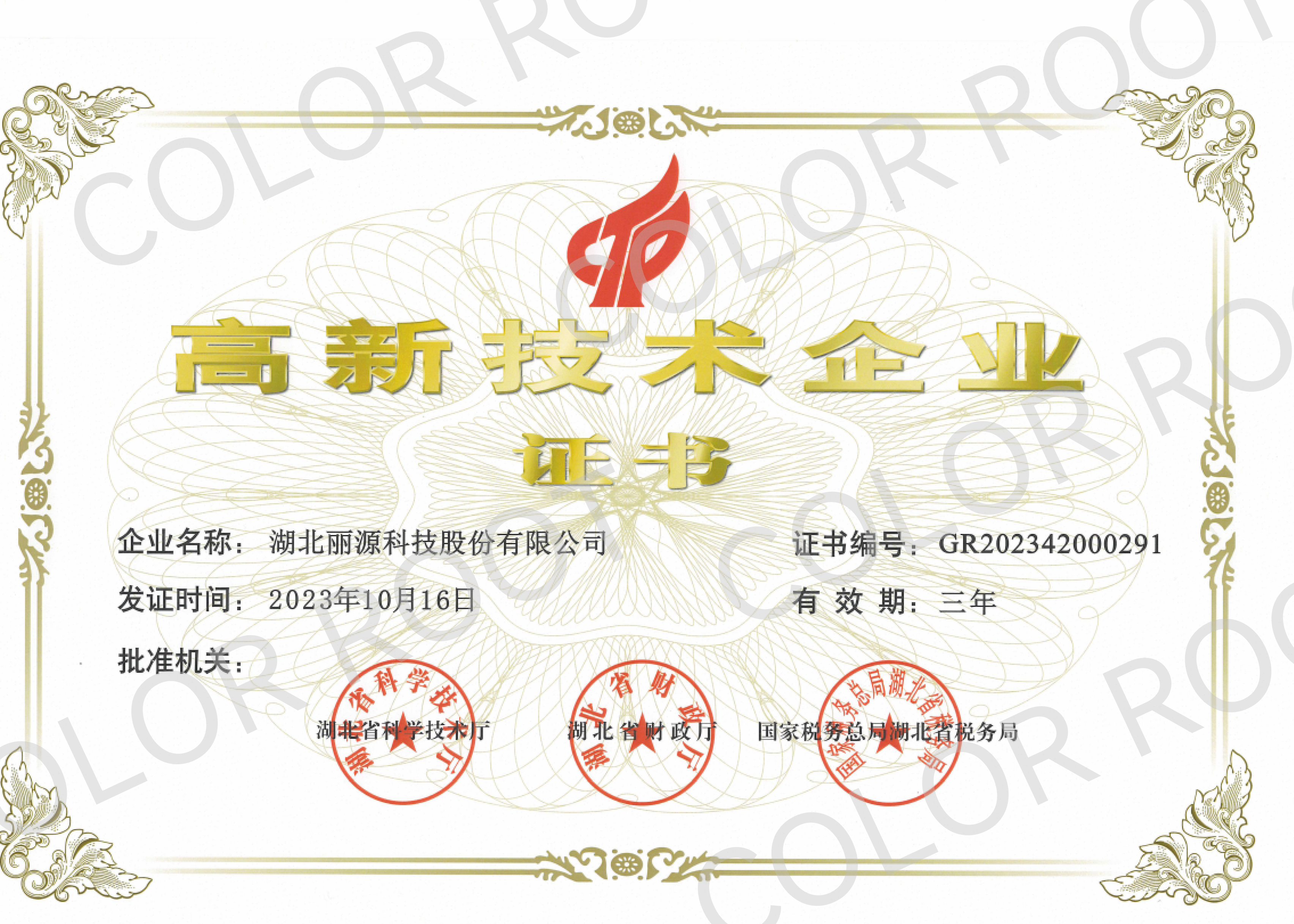 • 2011年10月,丽源科技首次被认定为「高新技术企业」(每3年复评1次)